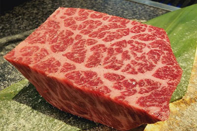 この牛肉は、きめ細かい肉質と柔らかさ、美しい霜降りが特徴です。